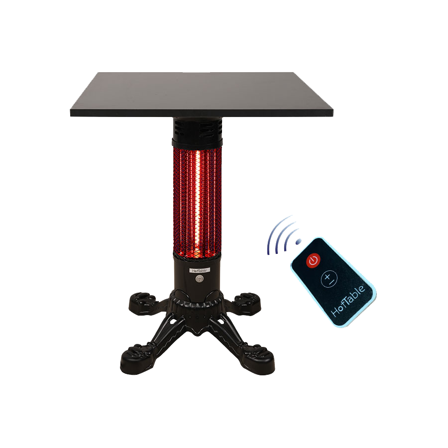 De HotTable Bistro onderscheidt zich door zijn innovatieve ontwerp van traditionele zittafels. In plaats van de typische verwarming van bovenaf, garandeert dit verwarmingssysteem een omnidirectionele warmtestraling van de onderkant.